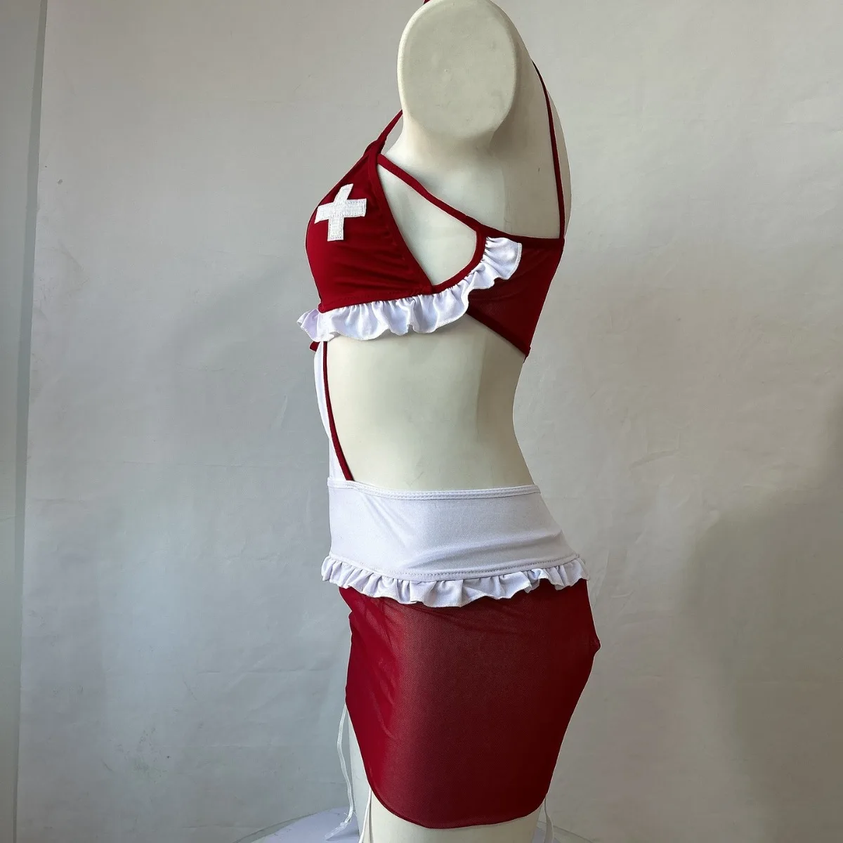 • 🩺 Includes nurse cap + sheer red mesh bodysuit