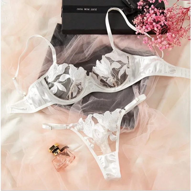 Toucheart Sexy Lingerie Woman Lace Transparent Underwear Embroidery Brief Set Bra Kit Push Up Breves Sets Thin Erotic Bras New