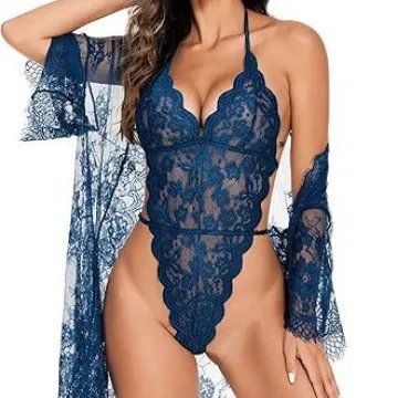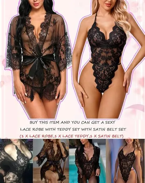 Be the first to review “Women’s Comfortable Sexy 2-Piece Lace Lingerie Set Free Size Kimono Robe with Jumpsuit Print Pattern Sleeveless for Night”