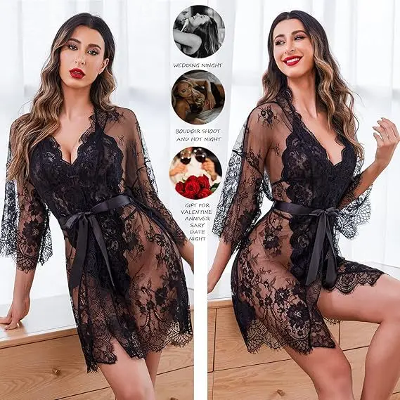 Long Transparent Bathrobe Passionate & Seductive Nightgown Womens Sexy Underwear for Home Wear